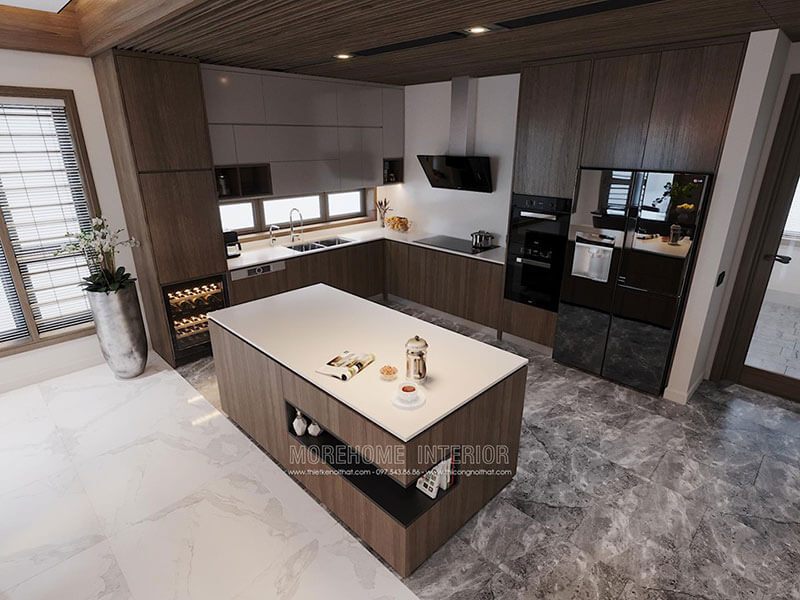 Mẫu tủ bếp gỗ chữ u hiện đại cho phòng bếp nhà biệt thự